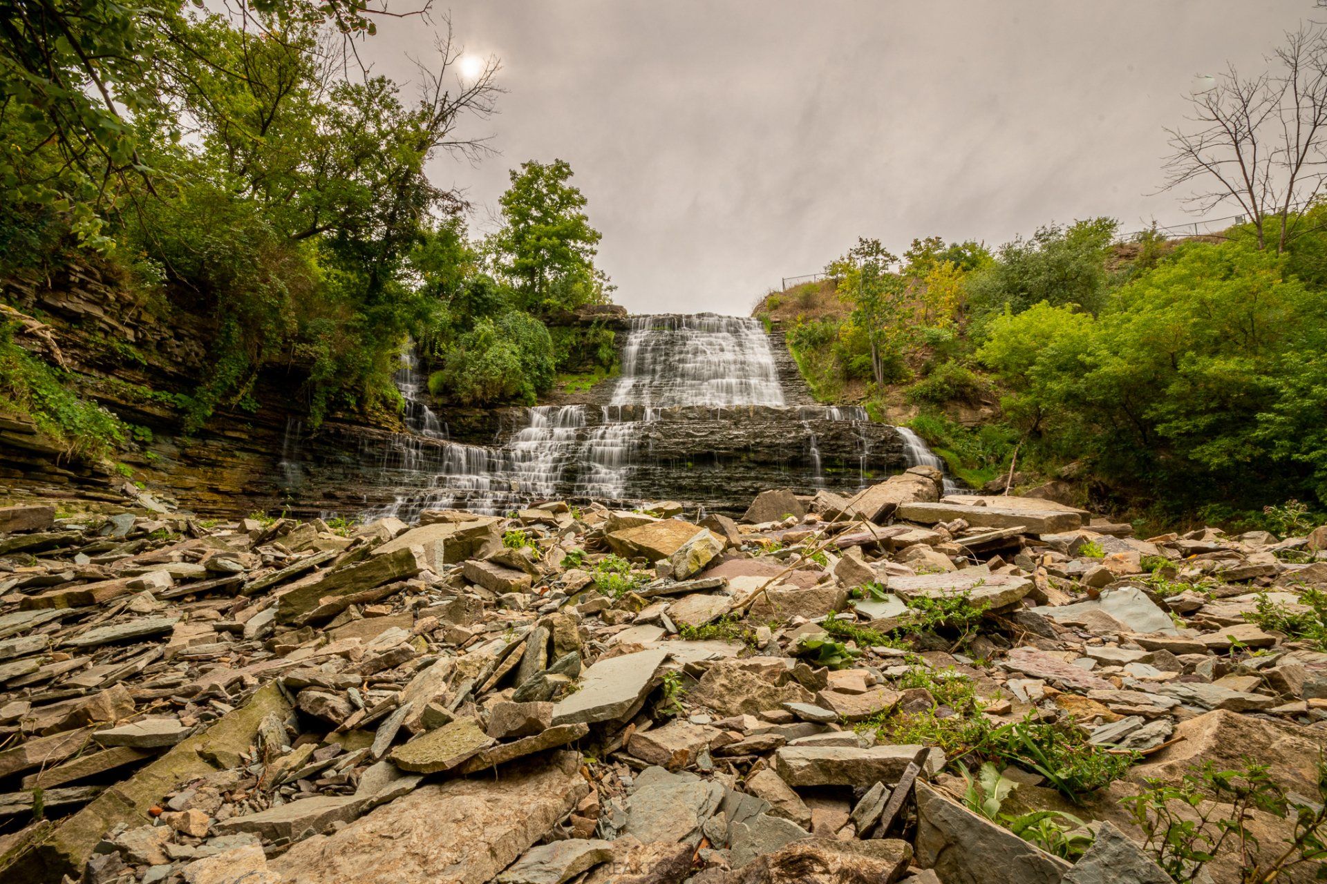 Albion Falls is one of the most picturesque waterfalls in the Hamilton Waterfall tour and one of the city’s most popular. The Red Hill Creek in the east of Hamilton's King’s Forest tumbles over rock that’s been formed over time into steps and shelves, fanning outwards into a beautiful cascade of rushing water.