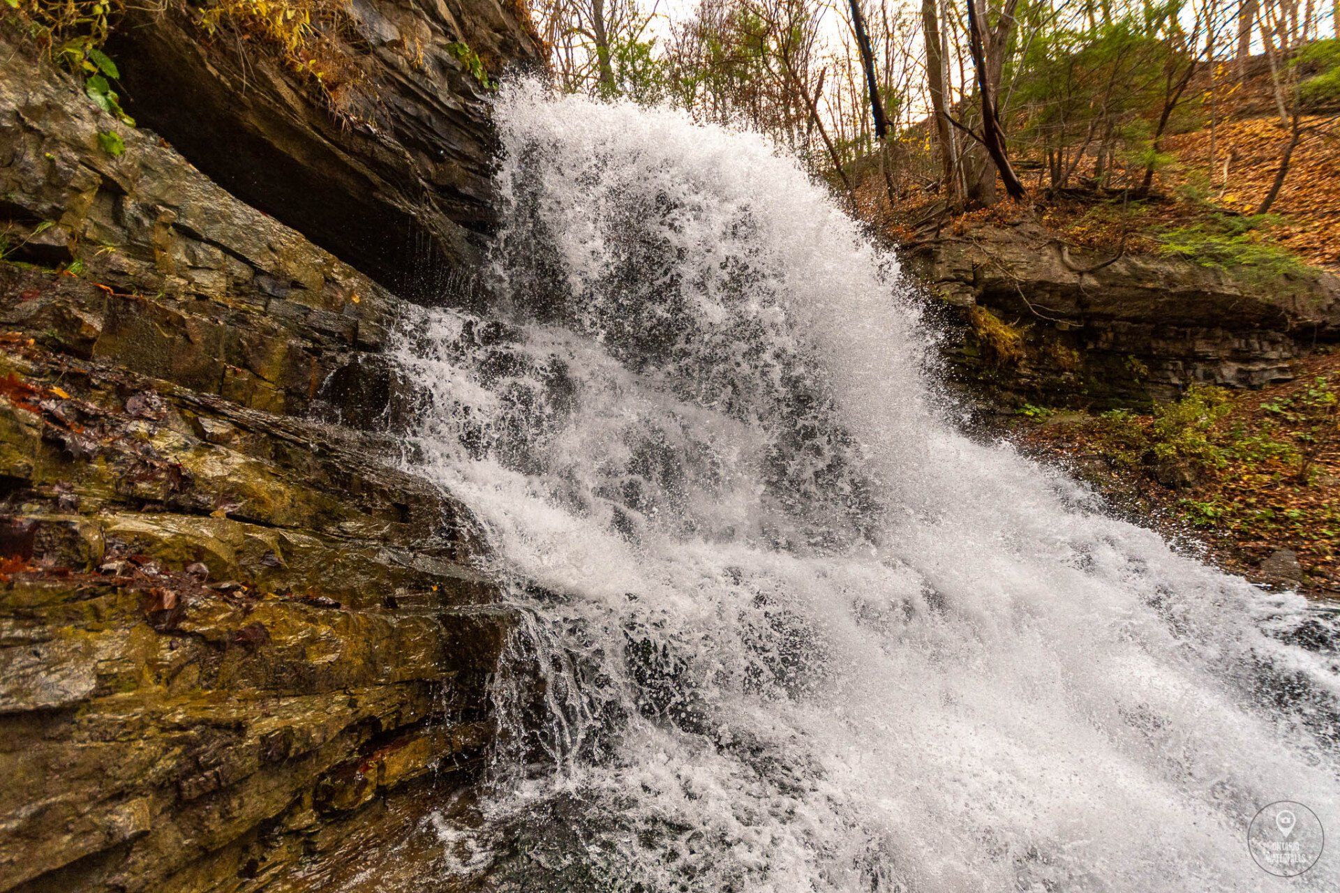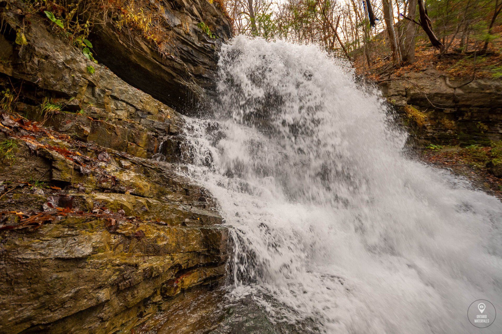 Once you have enjoyed your time at Lower Decew the hike continues towards Decew Falls, you will soon hear it and see it in the distance. But, before you hit Decew you will pass the man made “Tunnel Falls”, this is a small waterfall made from water that runs from a pipe in the escarpment running from the nearby hydroelectric plant.