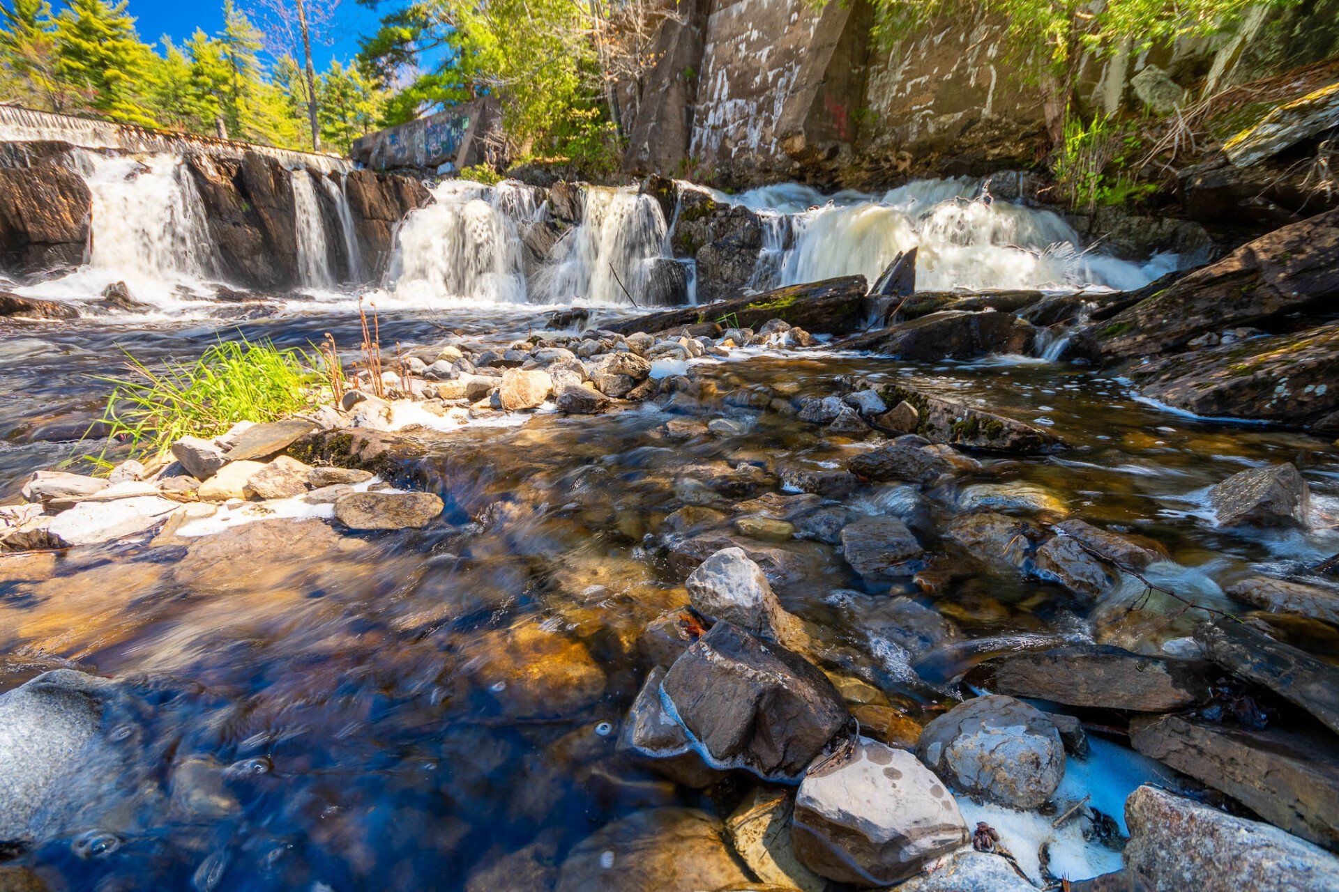Built in the early 1900's, the dam on the Skootamatta River at Flinton Falls was built out of concrete. The water was channeled through two spillways where the force was used to turn two turbines, which can still be seen. Much of the structure remains intact and is very photogenic most times of the year.