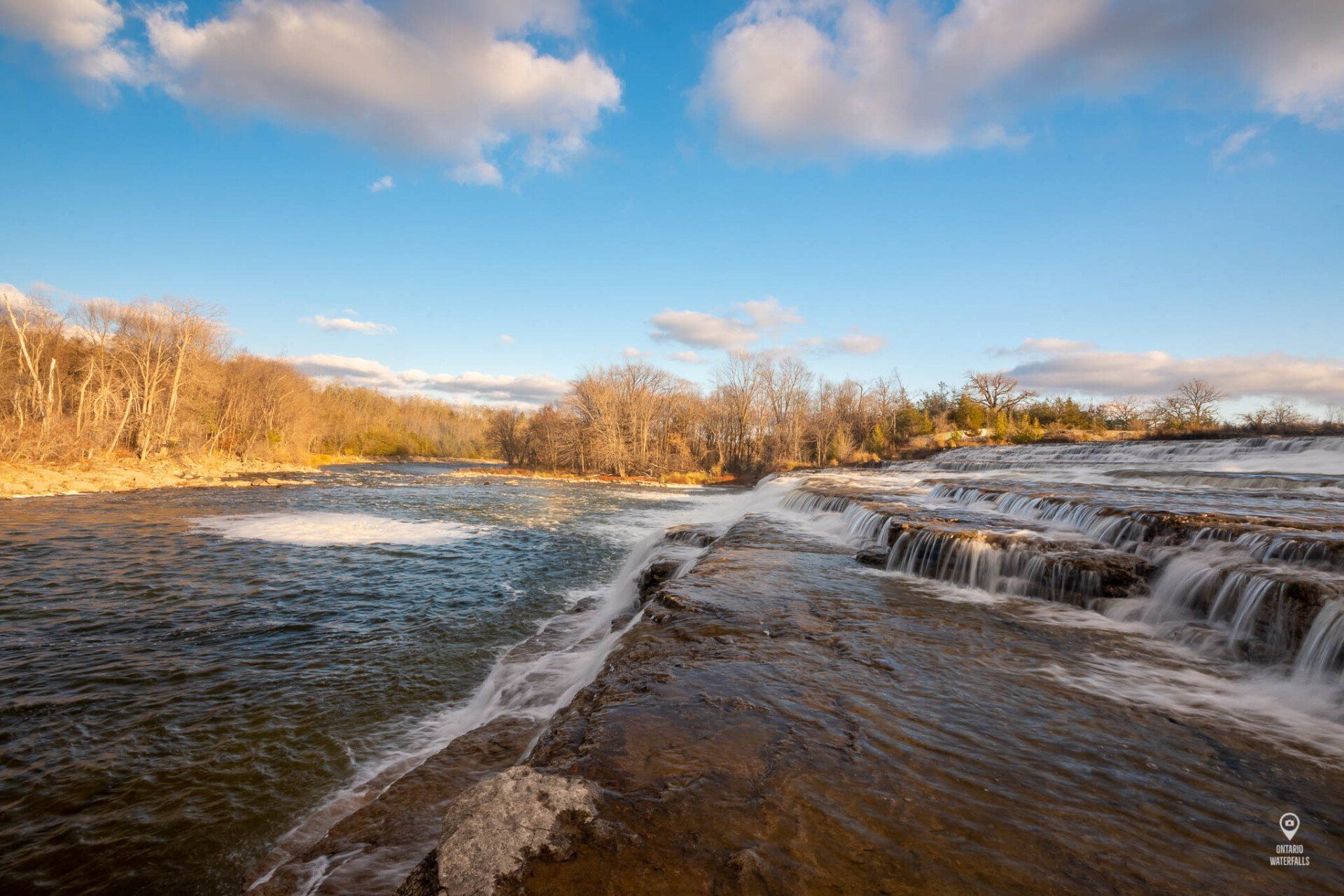 The width of Healey Falls is around 100 metres and it drops a total of 10-20 metres or more along a series of steps carved into the bedrock.