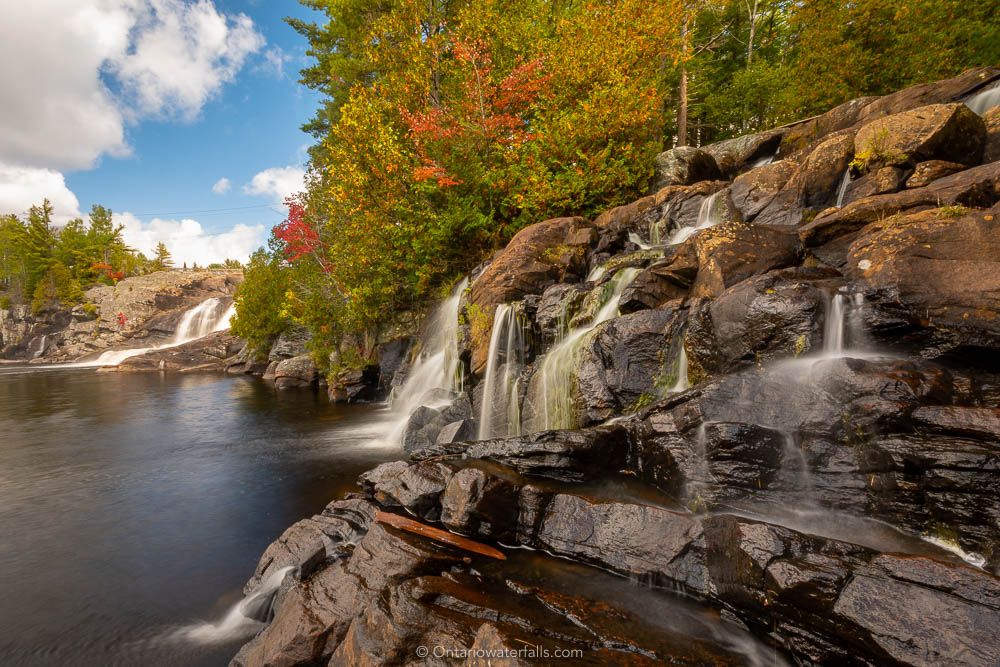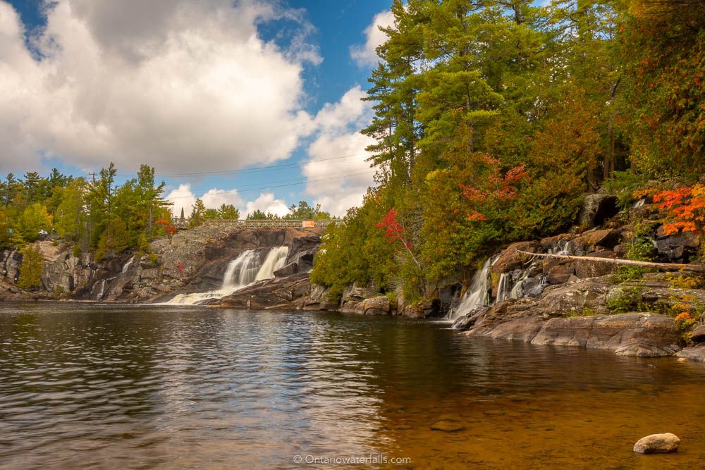 Little High Falls Falls can be found just a short hike away from Muskoka High Falls. The falls has two drops. The lower drop tumbles into the lake below High Falls. It is not easily seen from land, and is best seen from the water. The upper drop is about 100 feet upstream. You can walk right up to the base of this one. A foot bridge crosses over the top of the falls.