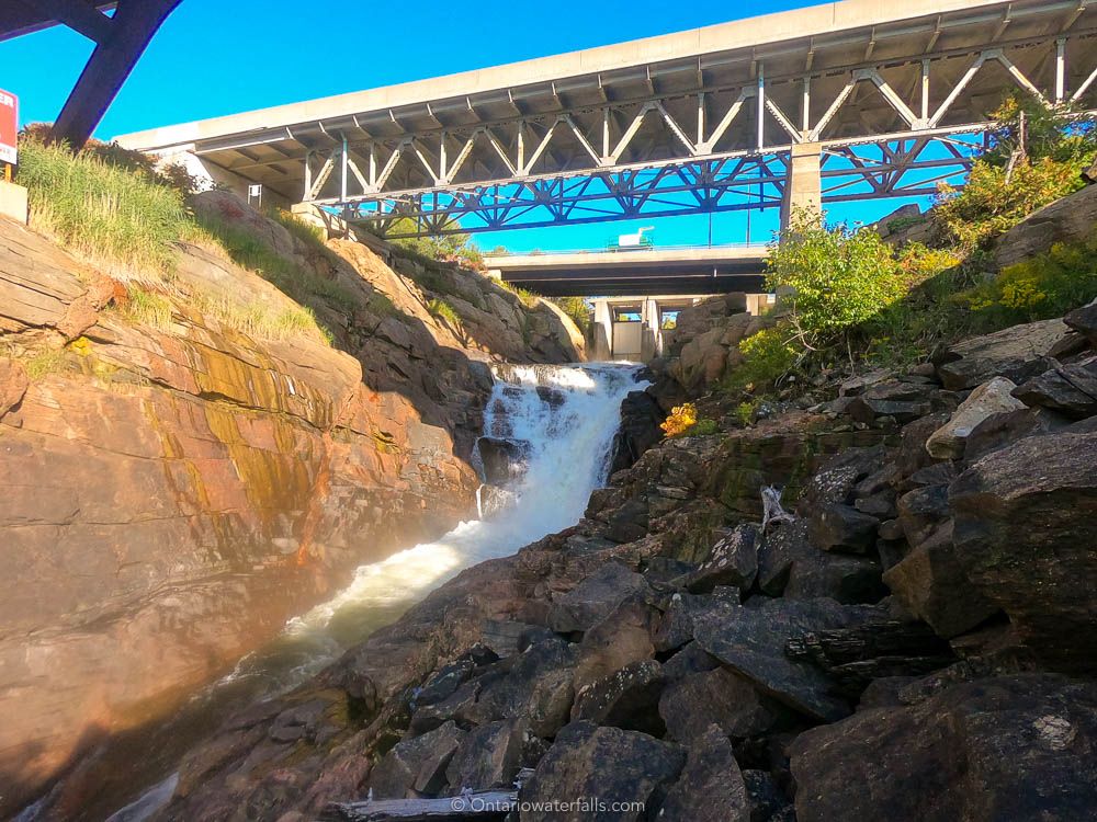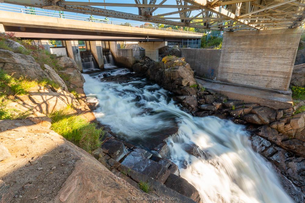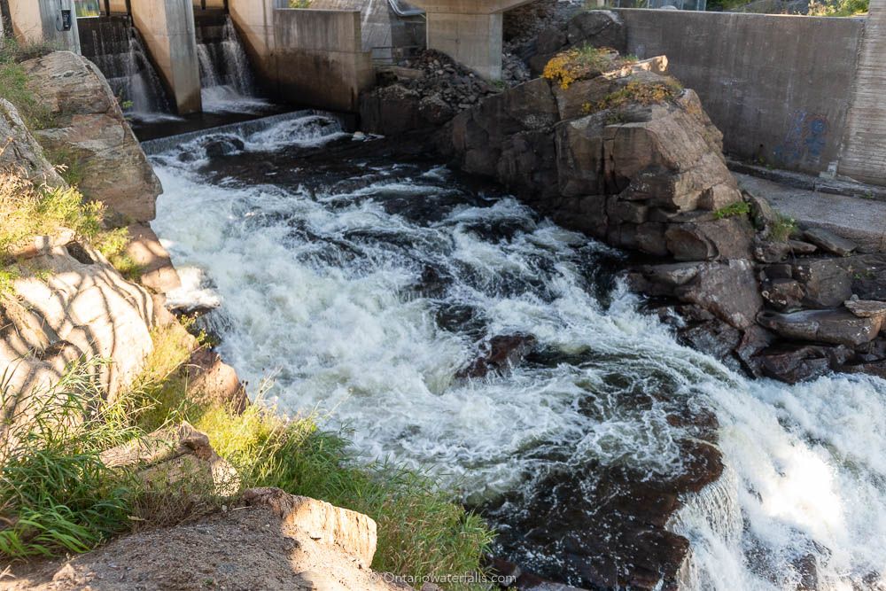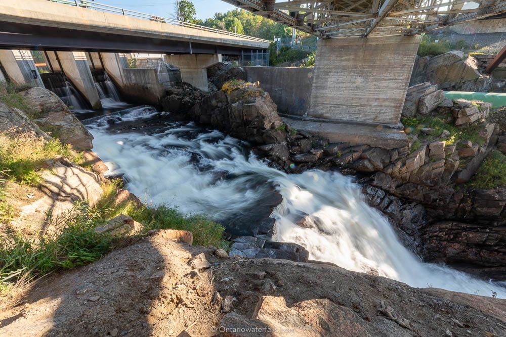 Located in Bracebridge Ontario Muskoka Falls is a large powerful waterfall that feeds from the south branch of the Muskoka River to the north branch.
