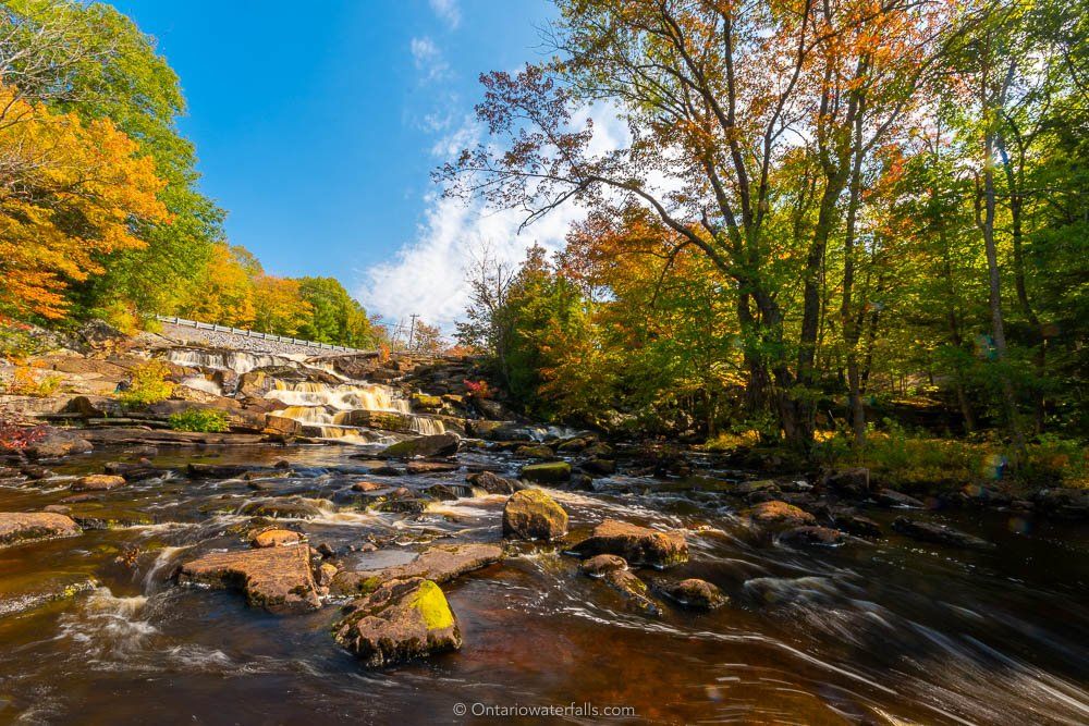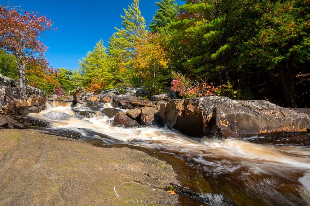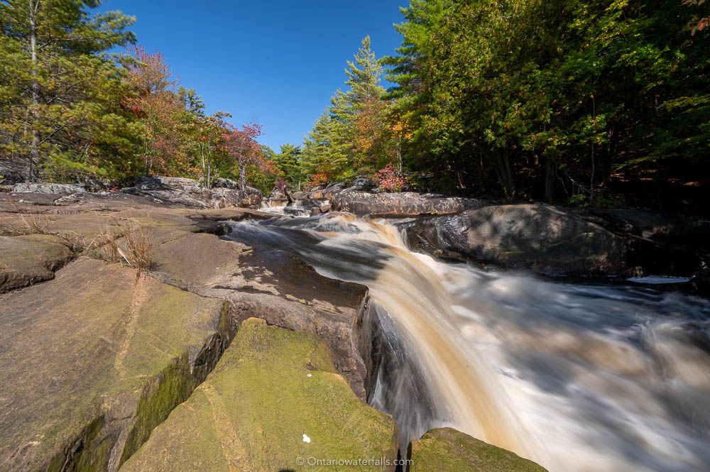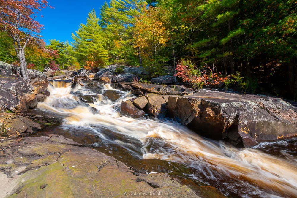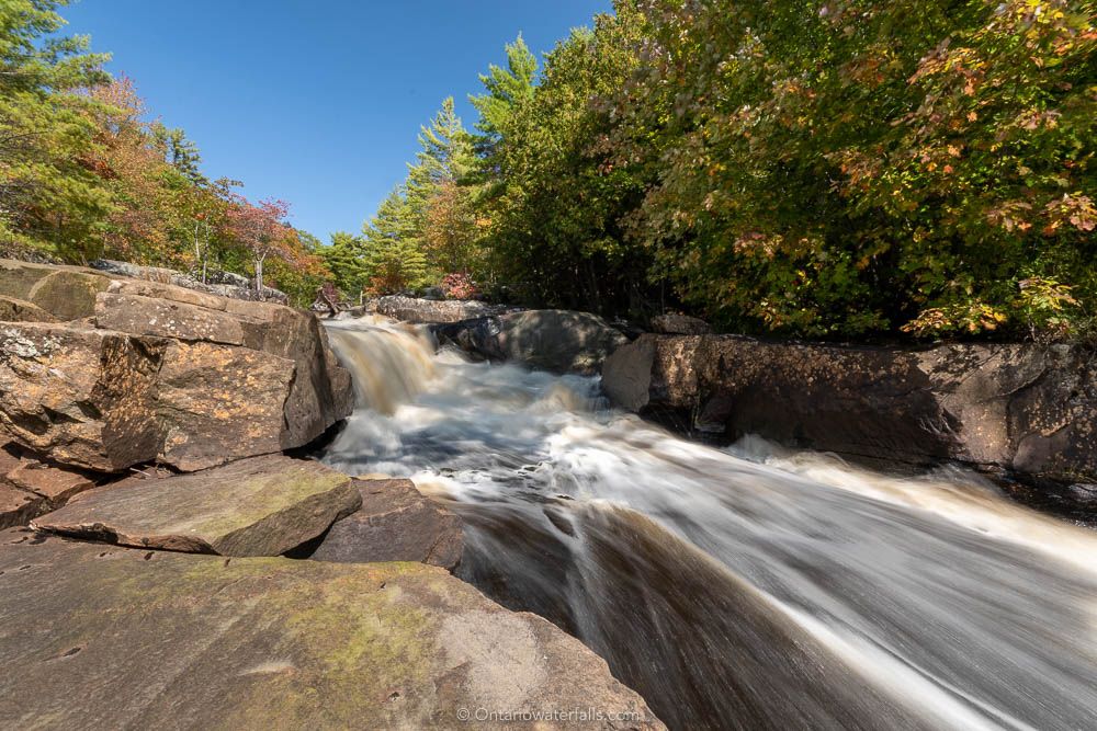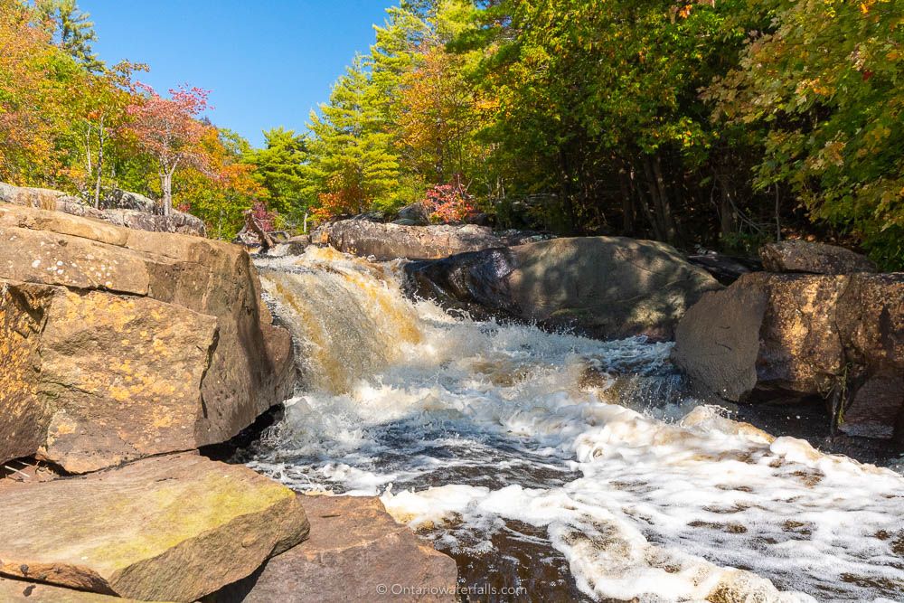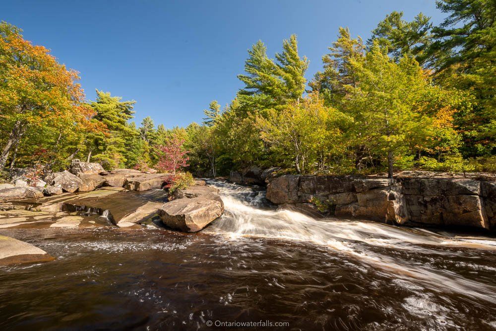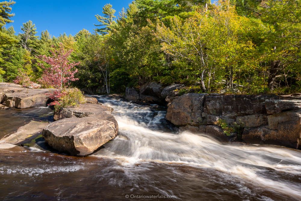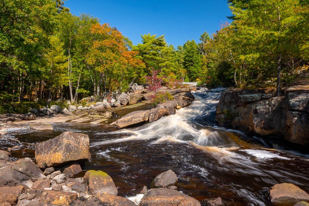 Rosseau Falls consists of two waterfalls as the river descends about 30 m along its route to Lake Rosseau. Most of Lower Rosseau Falls is available to the public but there is a small section down by the final outfall into Lake Rosseau that is on private property.