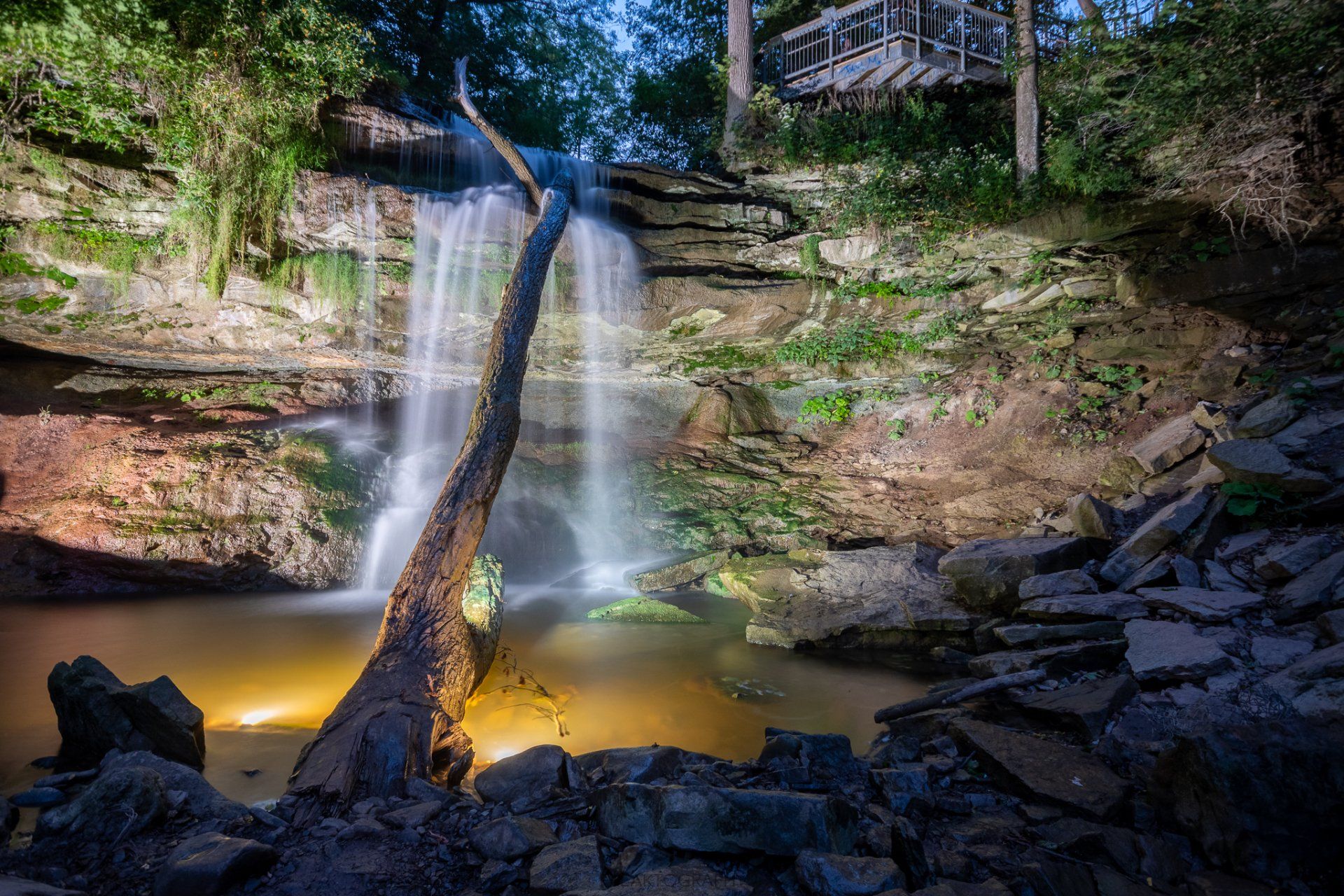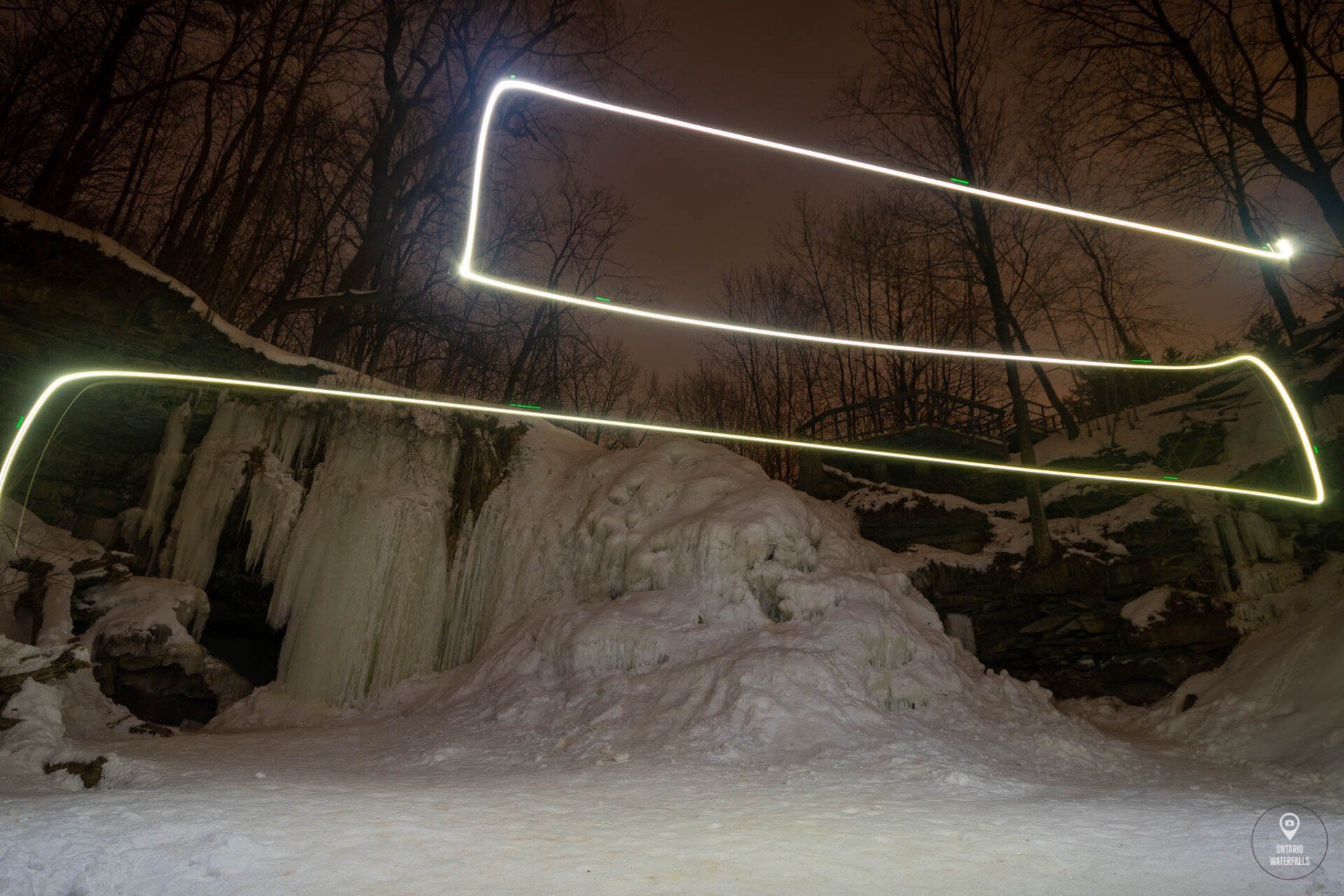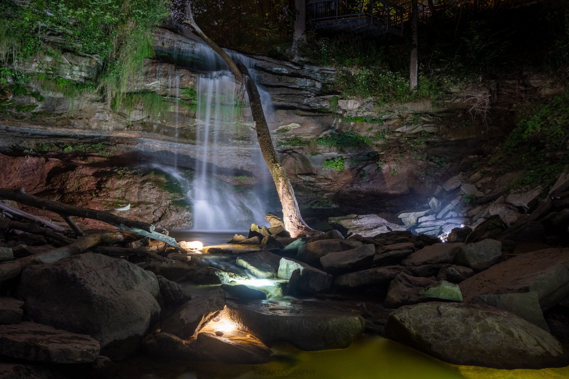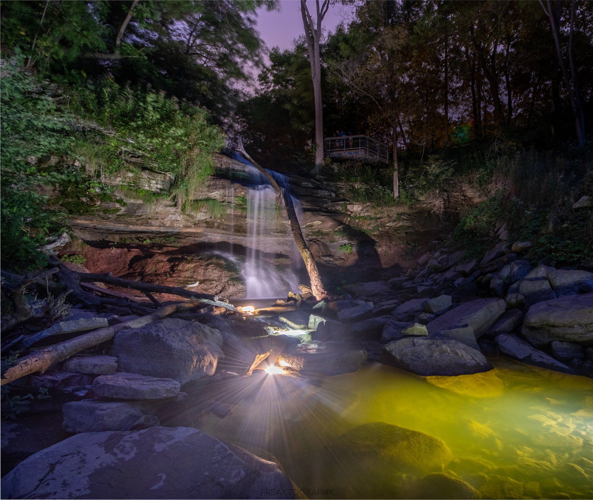 Smokey Hollow Waterfall at Night - Lume Cube & Drone