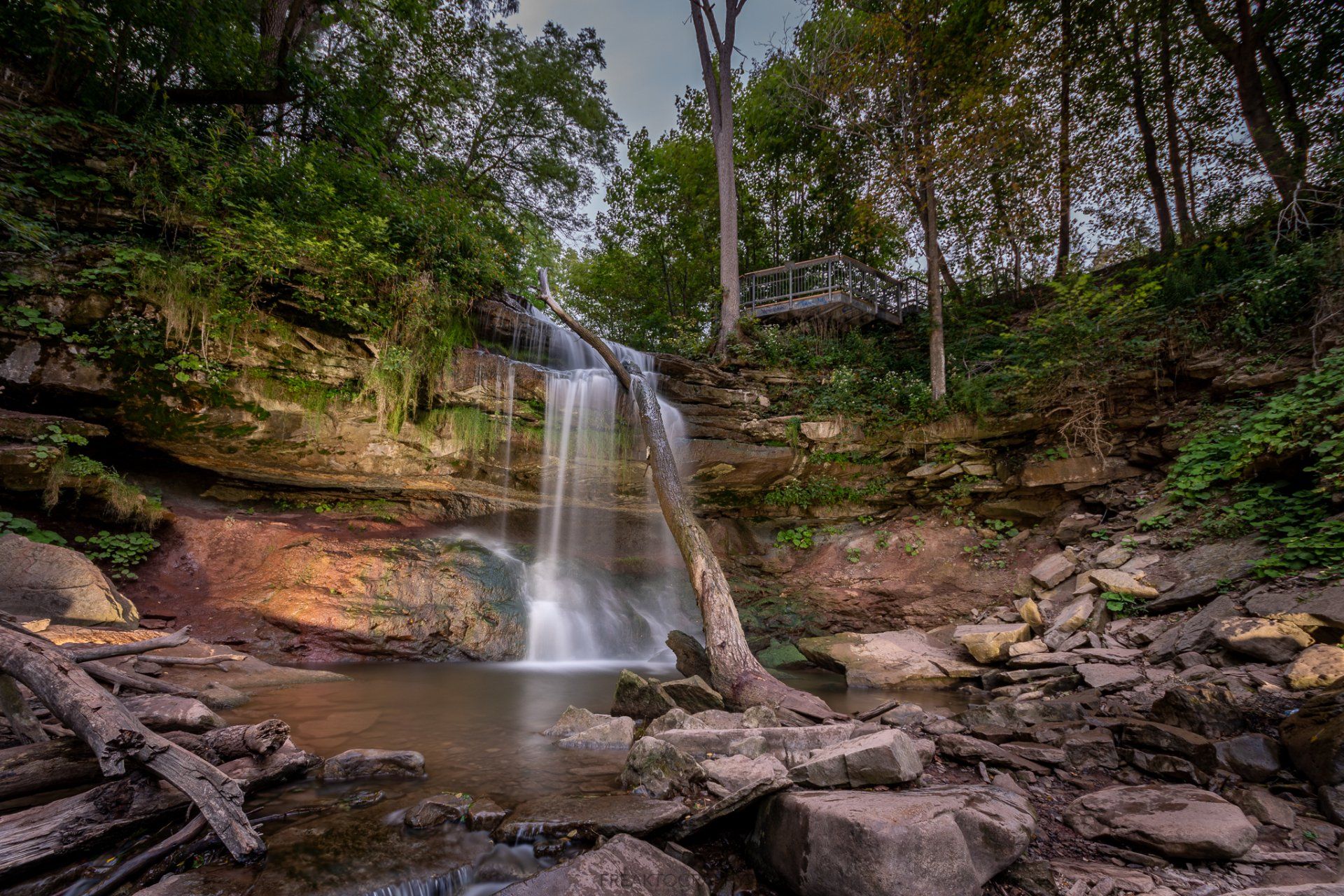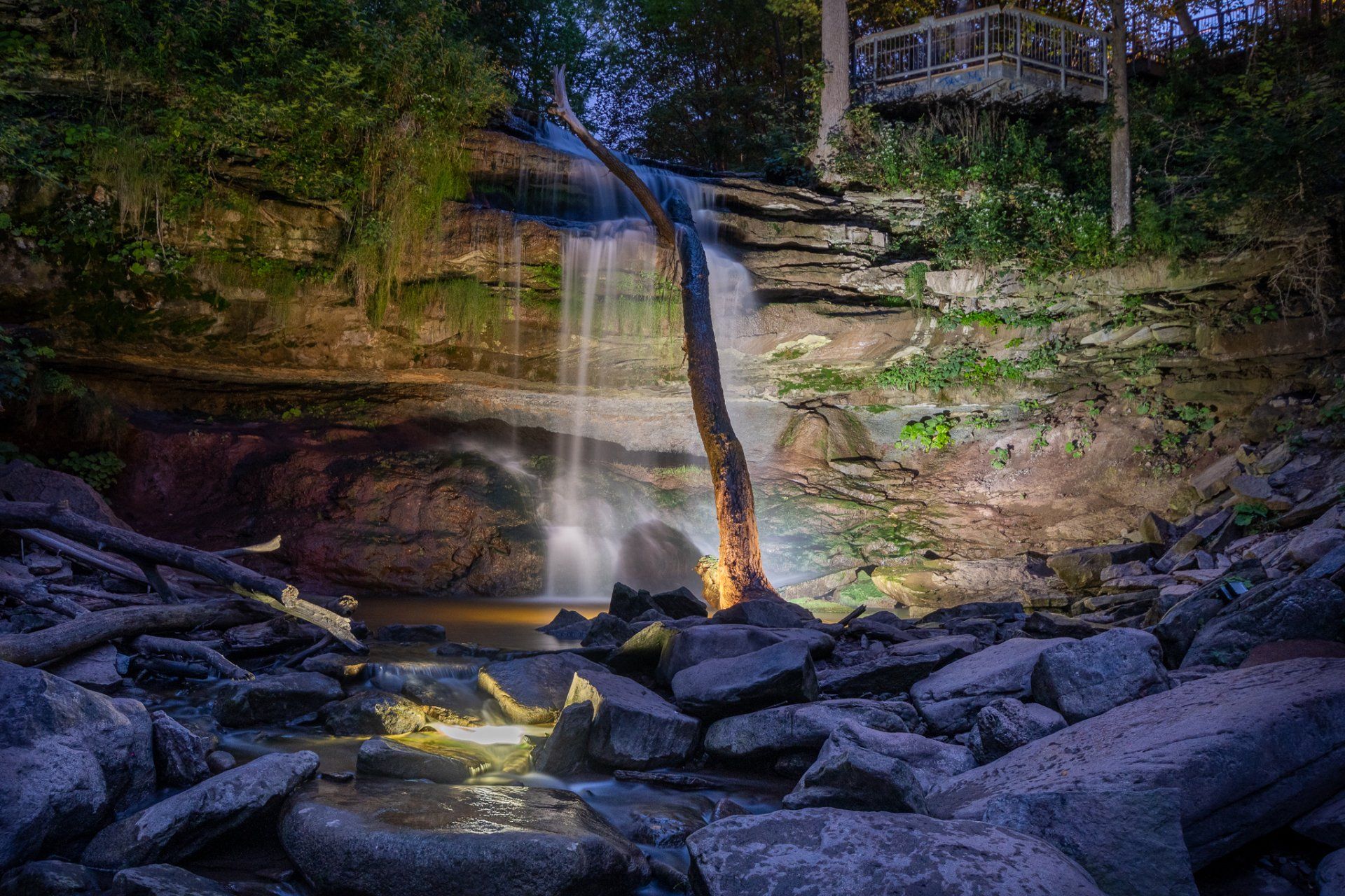 At 10 metres tall, this isn’t the area’s biggest waterfall, but this short and fast-flowing waterfall is surrounded by a great section of the Bruce Trail. It has a rugged footpath tracing its way up and down the ravine formed by Niagara Escarpment.