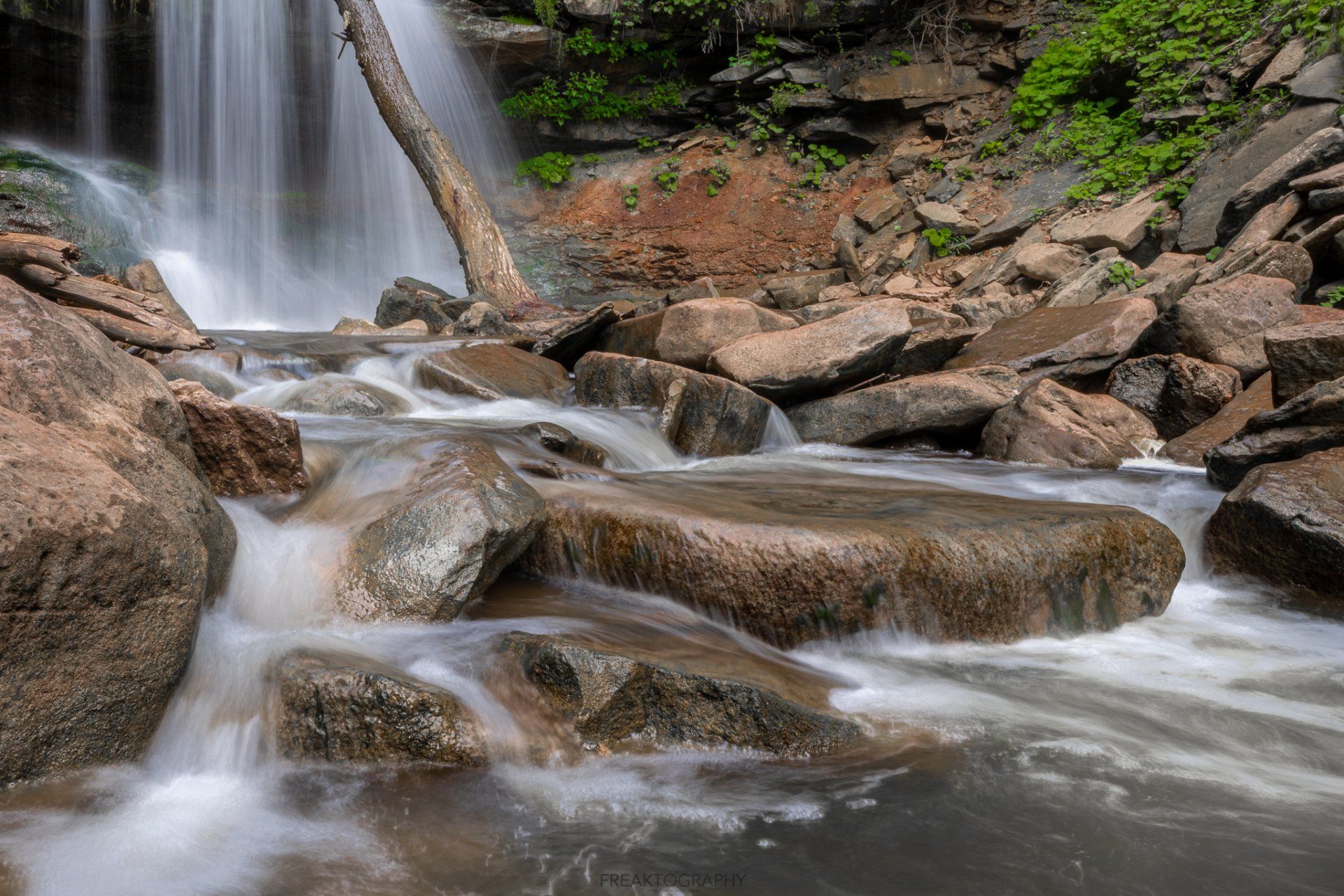 Smokey Hollow Falls, also known as Grindstone Falls, Waterdown Falls or Great Falls is a beautiful ribbon waterfall in a leafy forest setting that flows from Grindstone Creek in Waterdown.